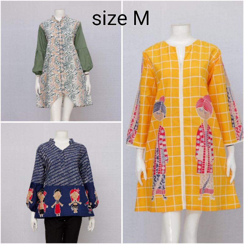 1. Tunik Aillen: bahan katun batik cap colet mix katun polos, kancing depan sampai bawah, busui friendly, ujung lengan karet. P.baju = 90cm.