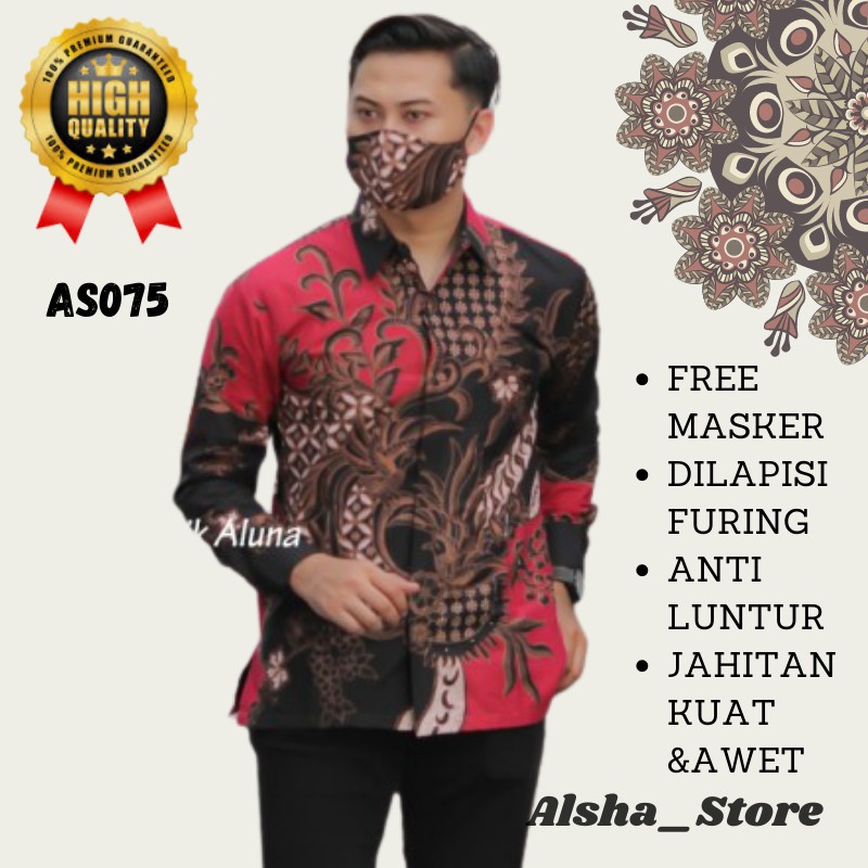 Pakaian Baju Kemeja Batik Lengan Panjang Pria Cowok Laki Laki Elegan Terbaru Free Masker AS075