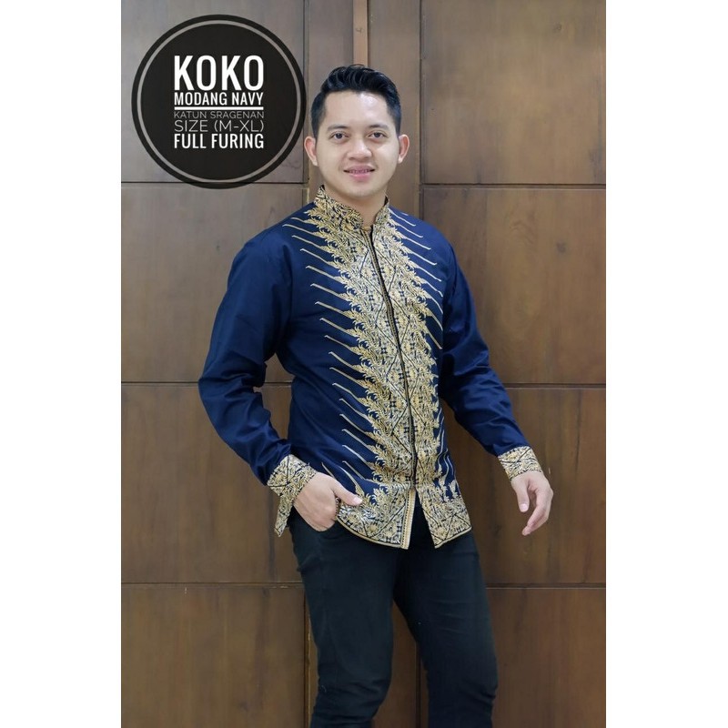 Name: Modang Navy Kemeja Baju Koko Batik Pria Lengan Panjang Katun Halus Full Furing Batik Solo