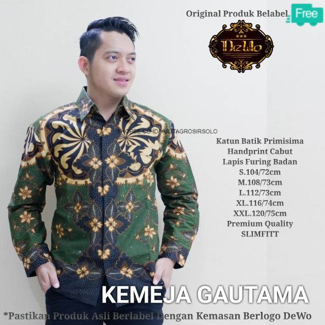Name: [ori Solo]batik Solo Gautama Hijau Kemeja Pria Katun Cabut Sragenan Full Furing