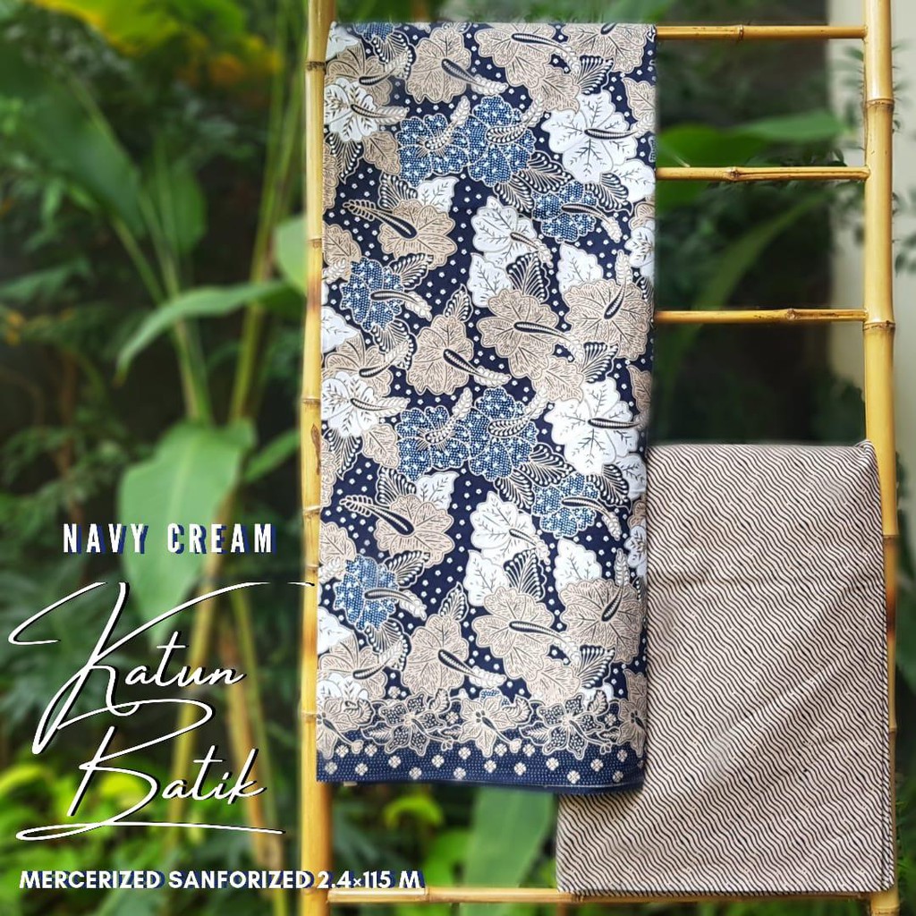 Name: Kain Batik Solo Katun Sanforized Kelopak Bunga Navy Cream Cacing 105.000