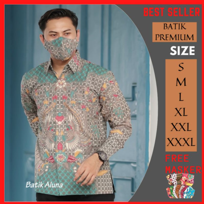 KEMEJA BATIK PREMIUM PRIA LENGAN PANJANG KODE PRODUK PCW 070 FREE MASKER