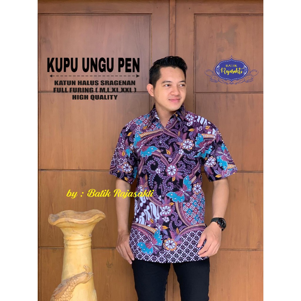 Banting Harga Pakaian di Kabupaten Bengkulu Selatan Atasan Kemeja Batik Pria Lengan Pendek Modern Premium Kupu Ungu Full Furing Rajasakti Solo Ori dari Produsen Batik Solo Asli Kota Surakarta (solo)