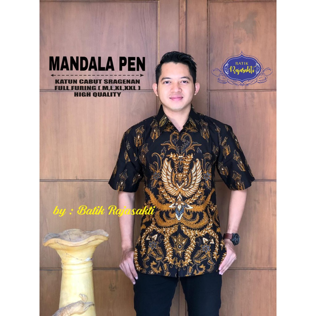 Name: Atasan Kemeja Batik Pria Lengan Pendek Premium Mandala Pen Full Furing Rajasakti Solo Ori